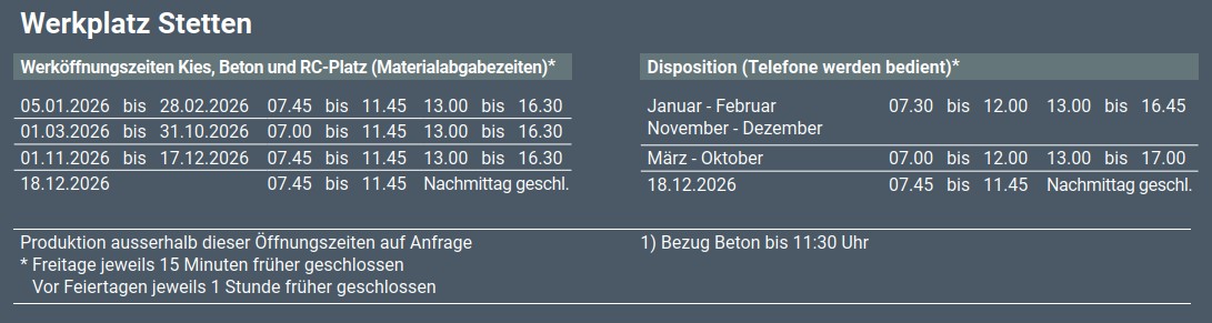 Öffnungszeiten Werkplatz Stetten