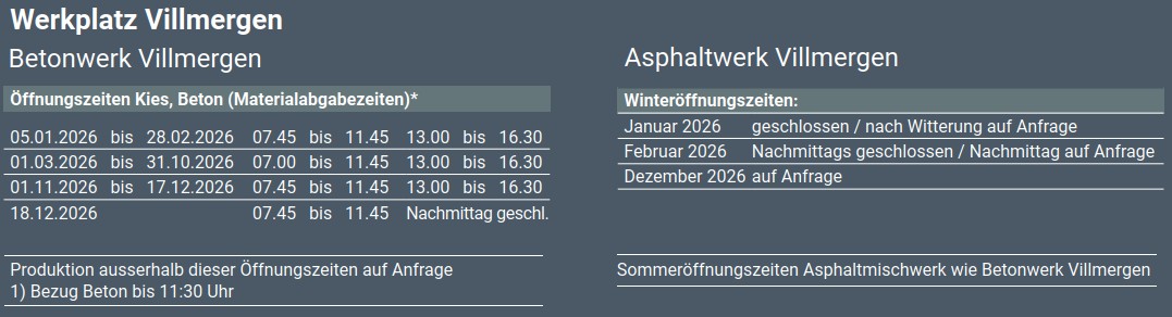 Öffnungszeiten Werkplatz Villmergen